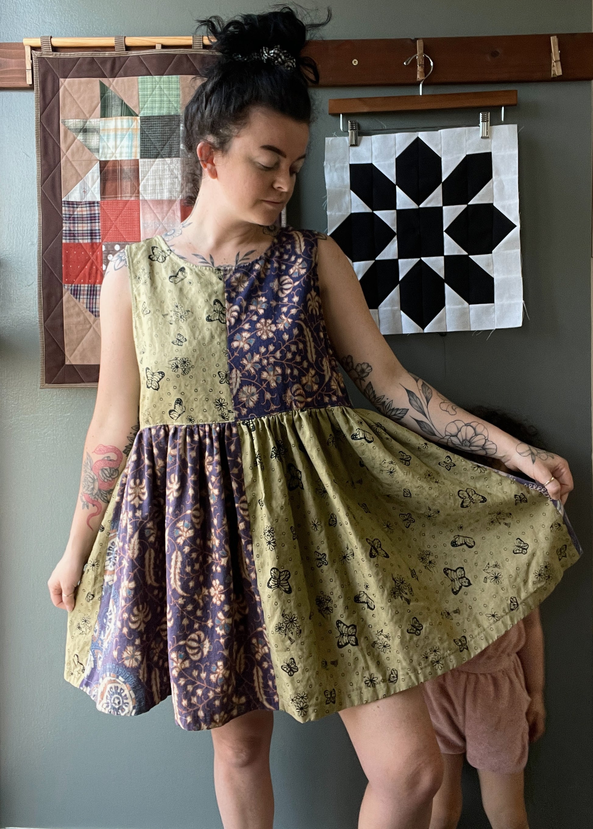 This dress was made using thrifted 100% cotton fabric. I used The Play Dress pattern by The Prairie Misfit (@theprairiemisfit on Instagram).